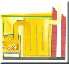 oder erreicht über Warmluftschächte die anderen Räume, die beheizt werden sollen.